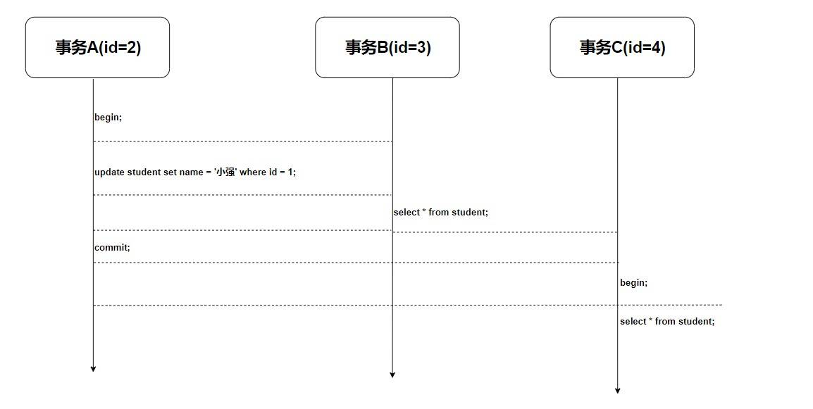 我们再来验证一下,这个时候我们将事务A提交,重新创建一个事务C并select。