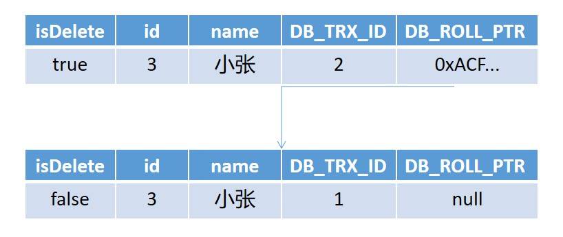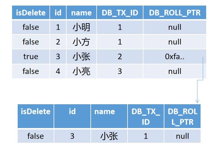 | isDelete | id | name | DB_TRX_ID | DB_ROLL_PTR |