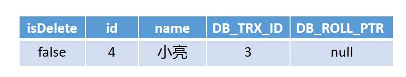 | isDelete | id | name | DB_TRX_ID | DB_ROLL_PTR | |