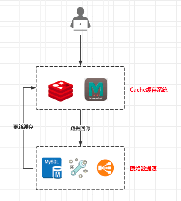 请求->缓存->命中缓存则返回数据->无缓存则读取原始数据源