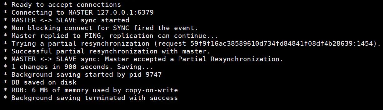 那么我们在从节点执行一个命令为 slaveof 127.0.0.1 6379,执行完就代表我们连接上了。