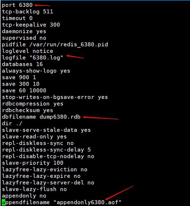 修改配置文件,主要就是修改端口。为了查看方便在把日志文件和持久化文件的名字都用各自的端口来做标识。