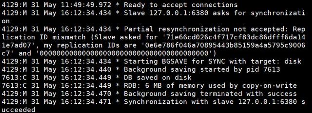 在建立完主从复制后主节点会创建master-replid变量,这个生成的策略跟runid一样,长度是41位,runid长度是40位,然后发送给从节点。